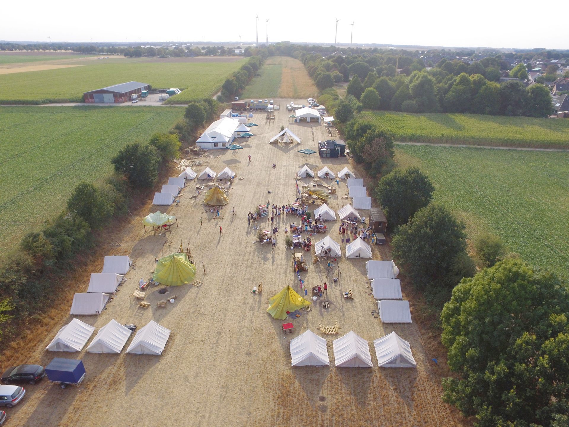 Trotz des eher spartanischen Lagerlebens sind die sanitären Anlagen sehr komfortabel. Es ist kein Donnerbalken, den man 100 m gegen den Wind riecht, sondern ein Toilettenwagen mit Klospülung und fließend Wasser. Duschen kann man hier auch, allerdings ist das nichts für „Warmduscher“ (aber wir gehen ja mindestens einmal in ein Schwimmbad, in dem man warm duschen kann 😅. Das Zentrum des Lagers bildet das Gemeinschaftszelt, in dem das öffentliche Sola-Leben stattfindet. Dort trifft man sich mit den anderen Gruppen zum Essen oder Singen, zu Andachten und Bekanntmachungen, zu Siegerehrungen und zur Nachtwachen-Vereidigung.